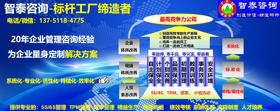 粵ICP備17018488號 TPM咨詢公司 TPM管理公司 TPM培訓(xùn)公司 咨詢公司聯(lián)系方式 咨詢公司聯(lián)系電話 TPM咨詢 TPM管理咨詢 TPM培訓(xùn) TPM管理 6S咨詢公司 6S培訓(xùn)公司 6S管理咨詢 管理公司聯(lián)系電話 培訓(xùn)公司聯(lián)系方式 6S培訓(xùn) 5S咨詢公司 6S管理 5S管理 TPM 管理公司聯(lián)系方式 5S培訓(xùn) 精益生產(chǎn) 精益管理